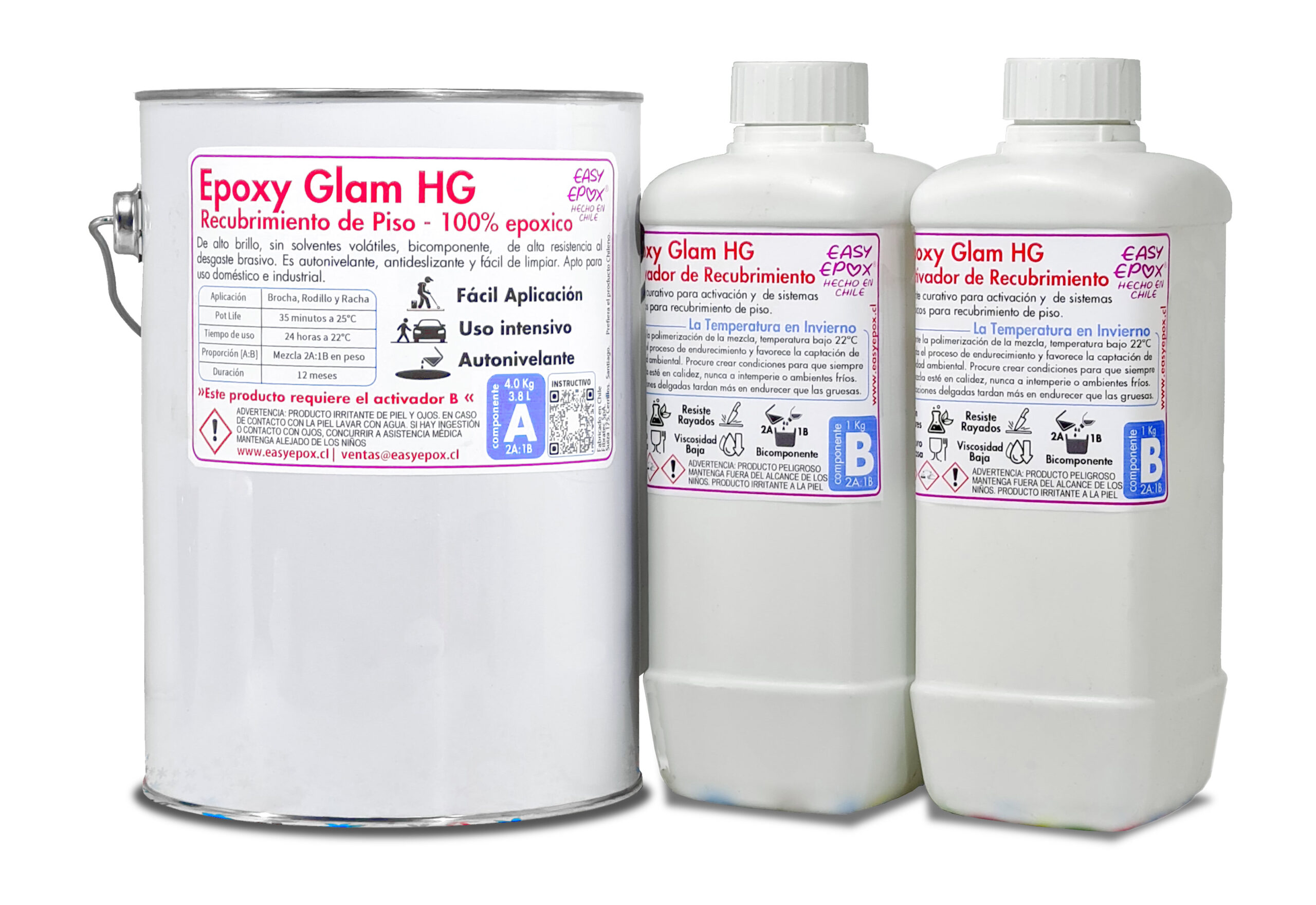 Dependiendo de disponibilidad de envases, la componente A se envía en bidón y la componente B en bidón o botella.